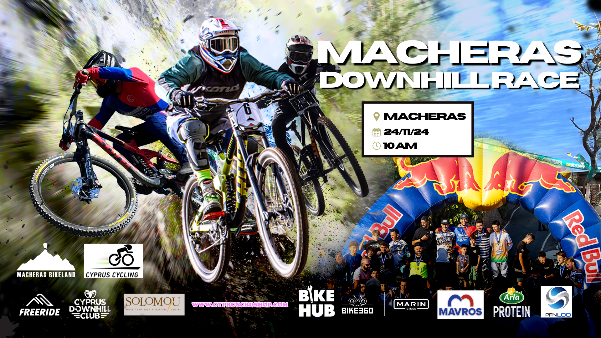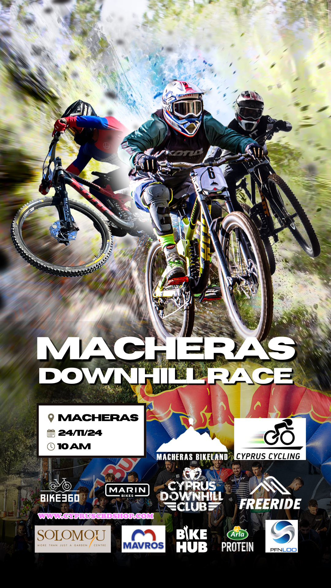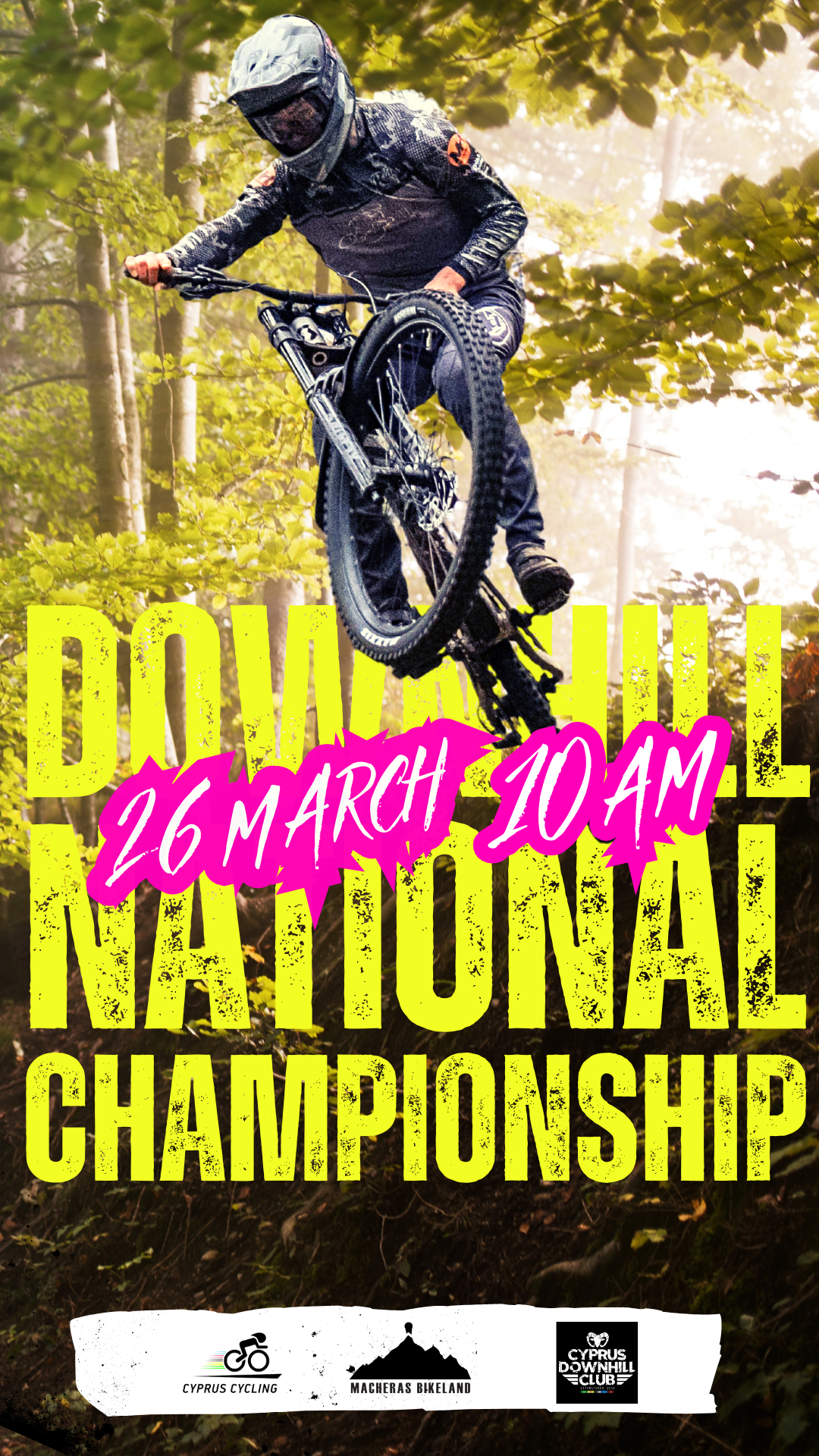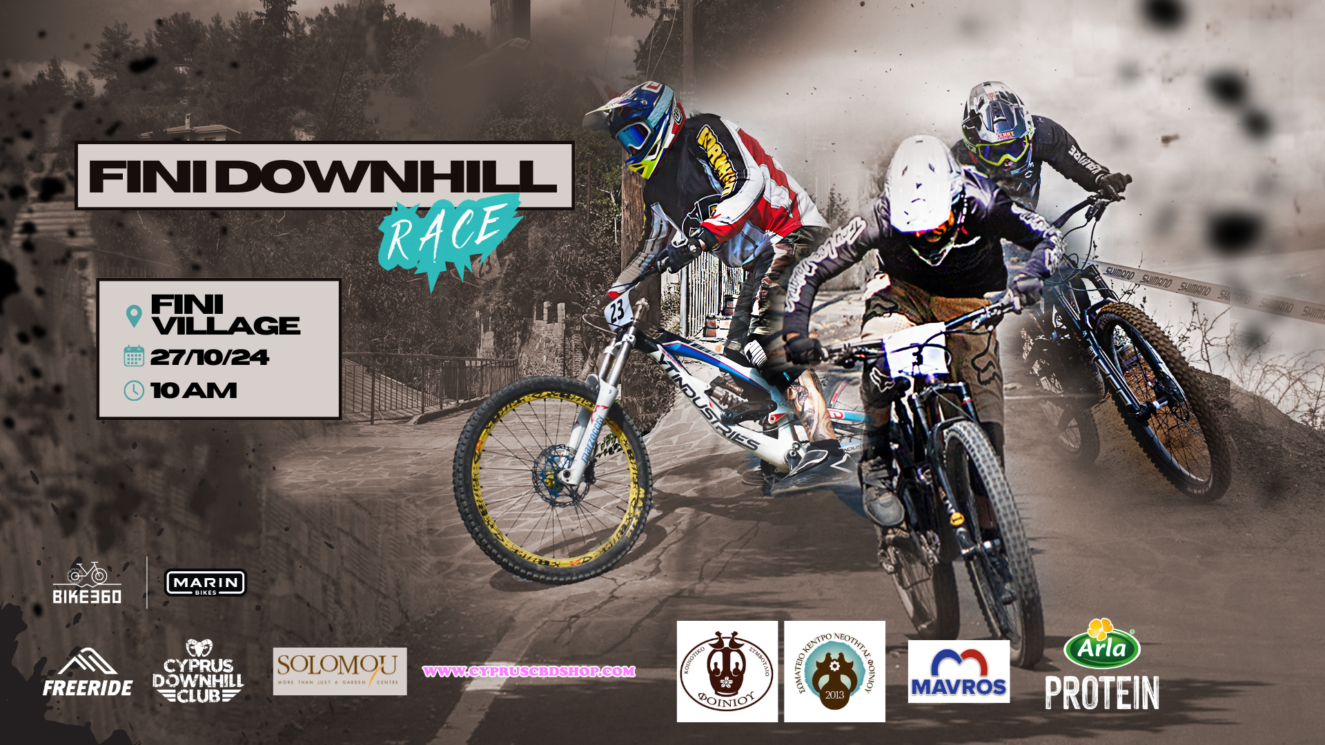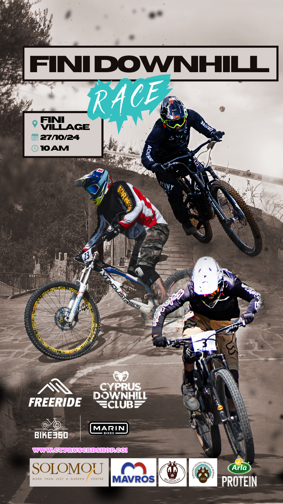 Mountain Bike Downhill races held in Fini, Macheras and Oroklini Hills. Posters used over 2 year span. Software used: Adobe Photoshop for visual effects, composition. Canva for overlays and type.